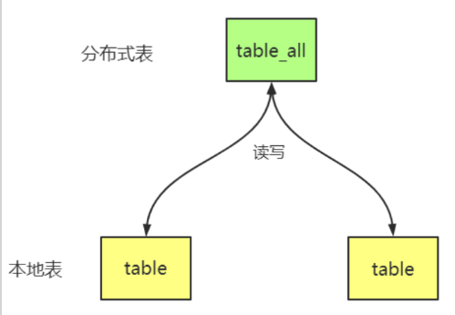 - 分布式表:逻辑表,对该表进行操作时,会被路由到本地,然后汇总结果返回给用户